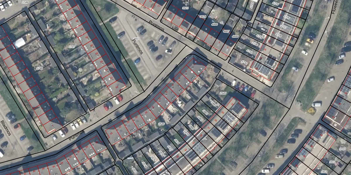 Het perceel waarop Puntmos 8 staat heeft een oppervlakte van 1636 m². Dit is een zeer groot perceel. De perceeloppervlakte wordt geregistreerd door het Kadaster. Gedetailleerde informatie over de maten van dit perceel kunt u vinden in het rapport Kadastrale kaart met maatvoering van Puntmos 8.