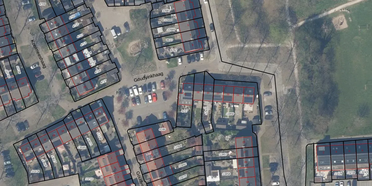 Het adres ligt op het perceel HTN04-A-9157, dat zich in de kadastrale gemeente Houten bevindt. De gemiddelde perceelgrootte in Houten is 2869,78 m². Dit perceel is kleiner: de perceeloppervlakte bedraagt 225 m². Het kleinste perceel in de kadastrale gemeente is 0 m² groot. De grootste perceeloppervlakte is 45,3 ha. Op het perceel bevinden zich geen andere adressen. In de Basisregistratie Kadaster (BRK) werden de grenzen van het perceel geregistreerd op 10-06-2002.