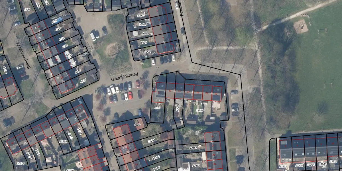 Het adres ligt op het perceel HTN04-A-13456, dat zich in de kadastrale gemeente Houten bevindt. De gemiddelde perceelgrootte in Houten is 2869,78 m². Dit perceel is kleiner: de perceeloppervlakte bedraagt 1497 m². Het kleinste perceel in de kadastrale gemeente is 0 m² groot. De grootste perceeloppervlakte is 45,3 ha. Er zijn 8 adressen aanwezig op het perceel. De laatste wijziging in het de Basisregistratie Kadaster (BRK) was op 27-05-2019.