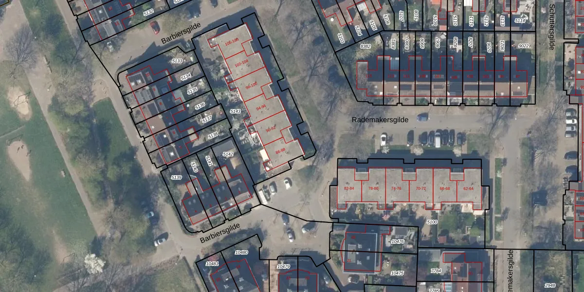 Het perceel waarop Rademakersgilde 86 staat heeft een oppervlakte van 1240 m². Dit is een zeer groot perceel. De perceeloppervlakte wordt geregistreerd door het Kadaster. Gedetailleerde informatie over de maten van dit perceel kunt u vinden in het rapport Kadastrale kaart met maatvoering van Rademakersgilde 86.