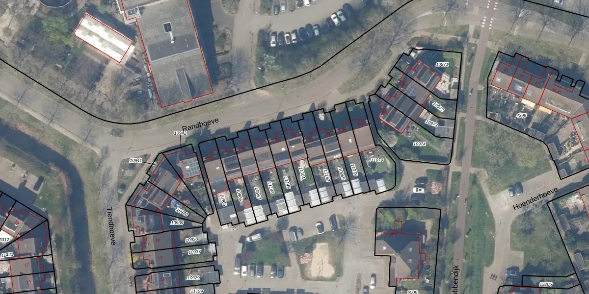 Gebruik de zoekbalk of klik op een perceel voor informatie over de adressen binnen dit perceel.