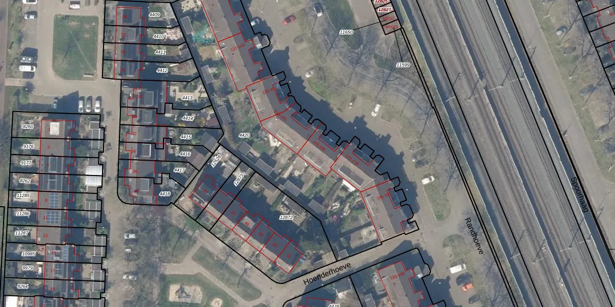 Randhoeve 165 is gelegen op kadastraal perceel HTN04A4420. Deze kadastrale aanduiding is uniek en wordt gebruikt door het Kadaster om eigendomsrechten en andere zakelijke rechten vast te leggen. Het perceel maakt onderdeel uit van de kadastrale gemeente Houten.