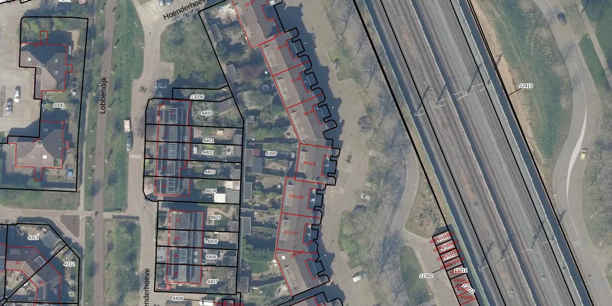 Randhoeve 97 is gelegen op kadastraal perceel HTN04A4399. Deze kadastrale aanduiding is uniek en wordt gebruikt door het Kadaster om eigendomsrechten en andere zakelijke rechten vast te leggen. Het perceel maakt onderdeel uit van de kadastrale gemeente Houten.