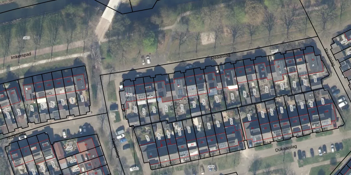 Reaalslag 9 is gelegen op kadastraal perceel HTN04E1877. Deze kadastrale aanduiding is uniek en wordt gebruikt door het Kadaster om eigendomsrechten en andere zakelijke rechten vast te leggen. Het perceel maakt onderdeel uit van de kadastrale gemeente Houten.