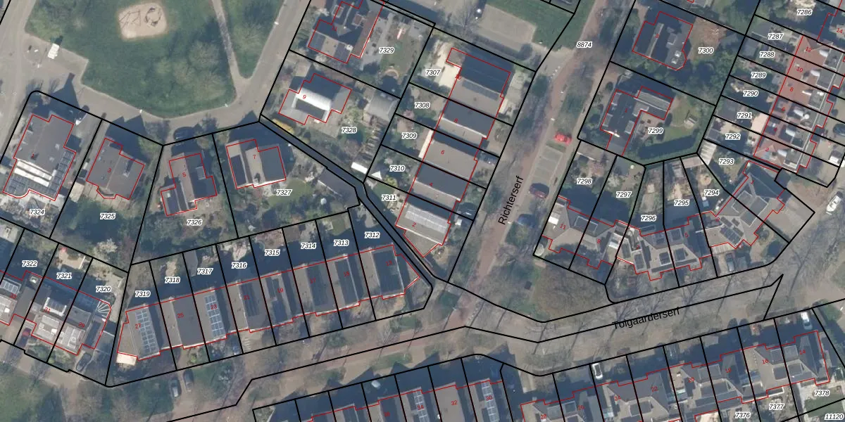 Richterserf 2 is gelegen op kadastraal perceel HTN04A7311. Deze kadastrale aanduiding is uniek en wordt gebruikt door het Kadaster om eigendomsrechten en andere zakelijke rechten vast te leggen. Het perceel maakt onderdeel uit van de kadastrale gemeente Houten.