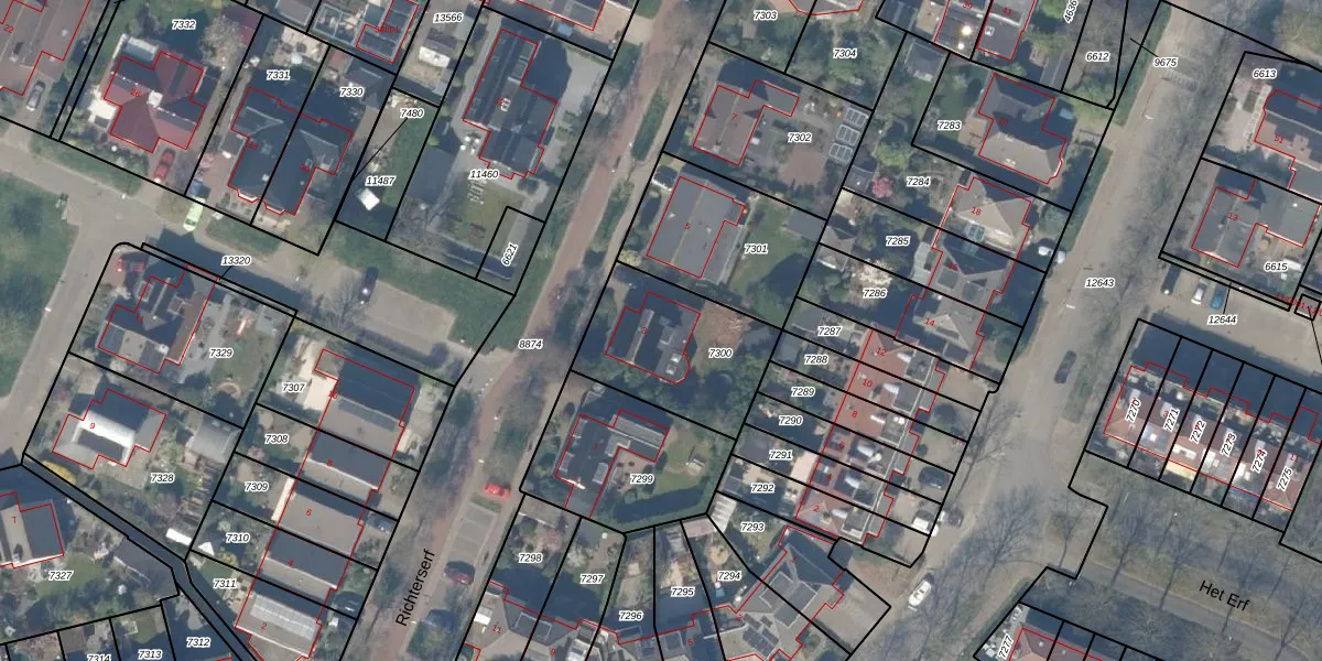 Het perceel waarop Richterserf 3 staat heeft een oppervlakte van 488 m². Dit is een groot perceel. De perceeloppervlakte wordt geregistreerd door het Kadaster. Gedetailleerde informatie over de maten van dit perceel kunt u vinden in het rapport Kadastrale kaart met maatvoering van Richterserf 3.