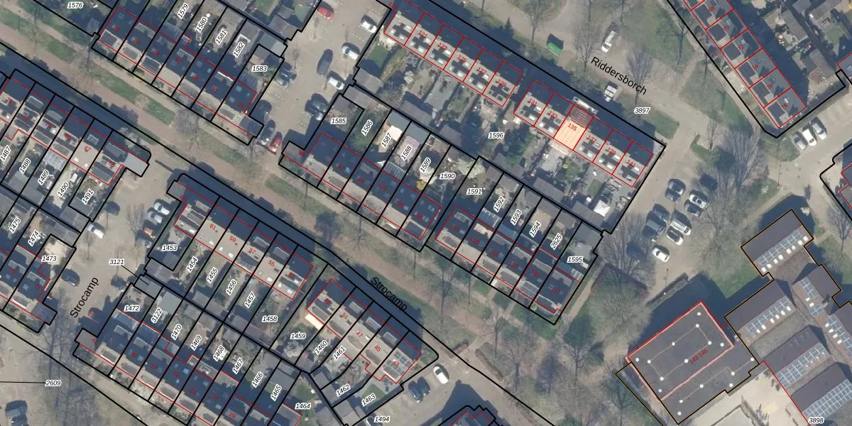 Het perceel waarop Riddersborch 105 staat heeft een oppervlakte van 181 m². Dit is een middelgroot perceel. De perceeloppervlakte wordt geregistreerd door het Kadaster. Gedetailleerde informatie over de maten van dit perceel kunt u vinden in het rapport Kadastrale kaart met maatvoering van Riddersborch 105.