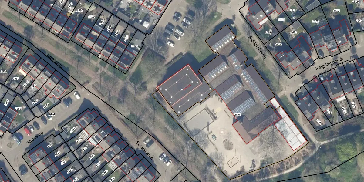 Het perceel waarop Riddersborch 145 staat heeft een oppervlakte van 1,7 ha. Dit is een zeer groot perceel. De perceeloppervlakte wordt geregistreerd door het Kadaster. Gedetailleerde informatie over de maten van dit perceel kunt u vinden in het rapport Kadastrale kaart met maatvoering van Riddersborch 145.