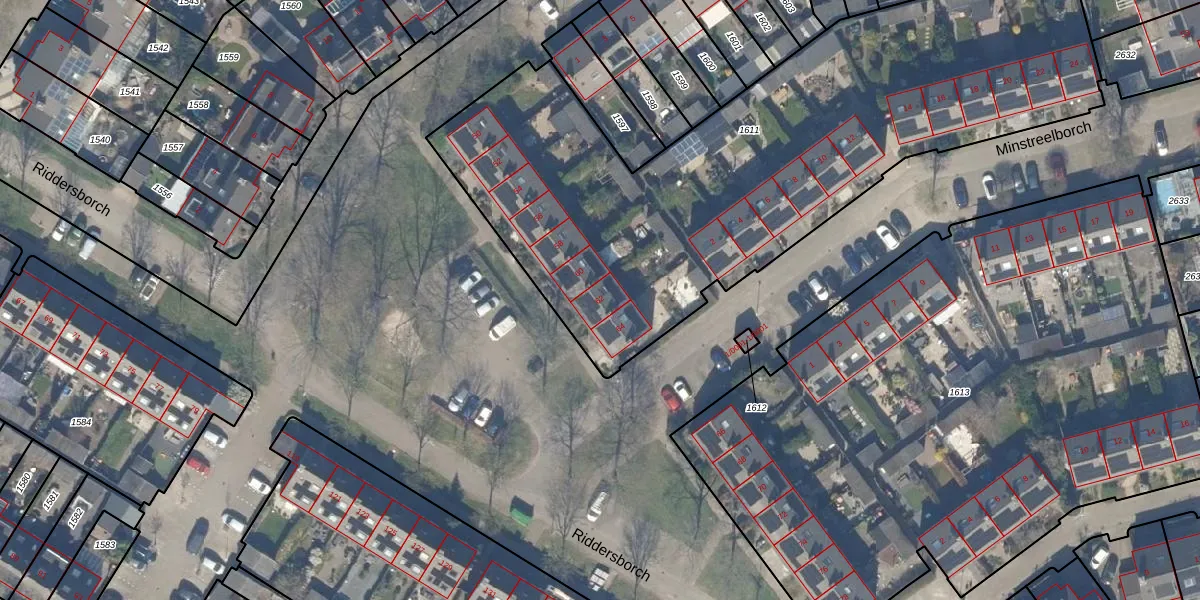 Riddersborch 62 is gelegen op kadastraal perceel HTN04E1611. Deze kadastrale aanduiding is uniek en wordt gebruikt door het Kadaster om eigendomsrechten en andere zakelijke rechten vast te leggen. Het perceel maakt onderdeel uit van de kadastrale gemeente Houten.