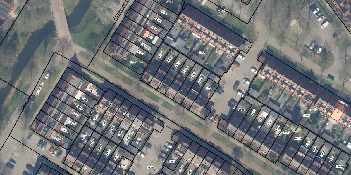 Het perceel waarop Riddersborch 87 staat heeft een oppervlakte van 137 m². Dit is een middelgroot perceel. De perceeloppervlakte wordt geregistreerd door het Kadaster. Gedetailleerde informatie over de maten van dit perceel kunt u vinden in het rapport Kadastrale kaart met maatvoering van Riddersborch 87.
