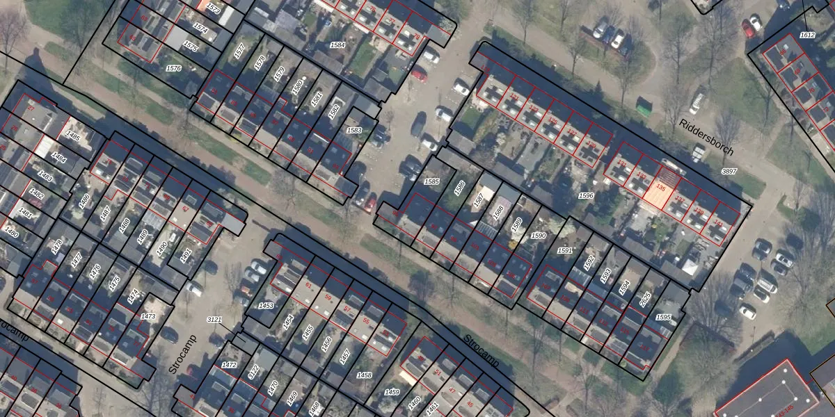 Het perceel waarop Riddersborch 95 staat heeft een oppervlakte van 174 m². Dit is een middelgroot perceel. De perceeloppervlakte wordt geregistreerd door het Kadaster. Gedetailleerde informatie over de maten van dit perceel kunt u vinden in het rapport Kadastrale kaart met maatvoering van Riddersborch 95.