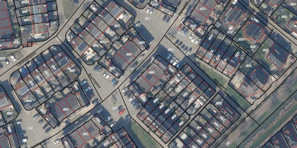 Het perceel waarop Rijnspoor 15 staat heeft een oppervlakte van 321 m². Dit is een groot perceel. De perceeloppervlakte wordt geregistreerd door het Kadaster. Gedetailleerde informatie over de maten van dit perceel kunt u vinden in het rapport Kadastrale kaart met maatvoering van Rijnspoor 15.