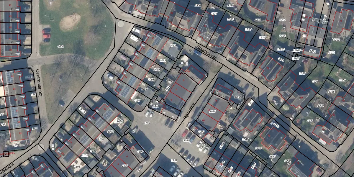 Het perceel waarop Rijnspoor 6 staat heeft een oppervlakte van 336 m². Dit is een groot perceel. De perceeloppervlakte wordt geregistreerd door het Kadaster. Gedetailleerde informatie over de maten van dit perceel kunt u vinden in het rapport Kadastrale kaart met maatvoering van Rijnspoor 6.
