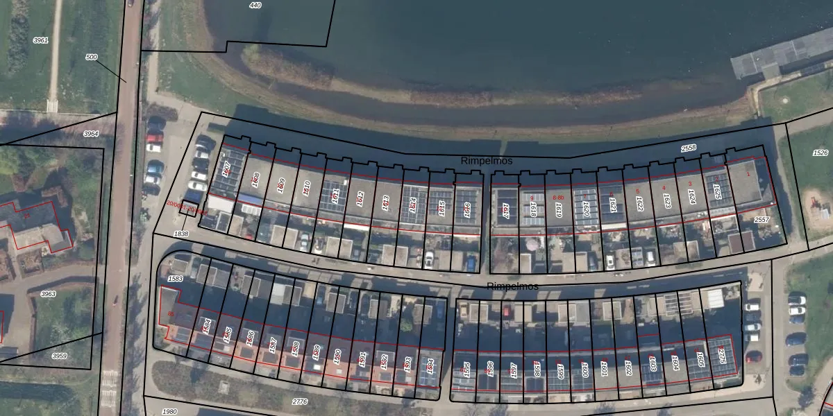 Rimpelmos 13-b is gelegen op kadastraal perceel HTN04B1614. Deze kadastrale aanduiding is uniek en wordt gebruikt door het Kadaster om eigendomsrechten en andere zakelijke rechten vast te leggen. Het perceel maakt onderdeel uit van de kadastrale gemeente Houten.