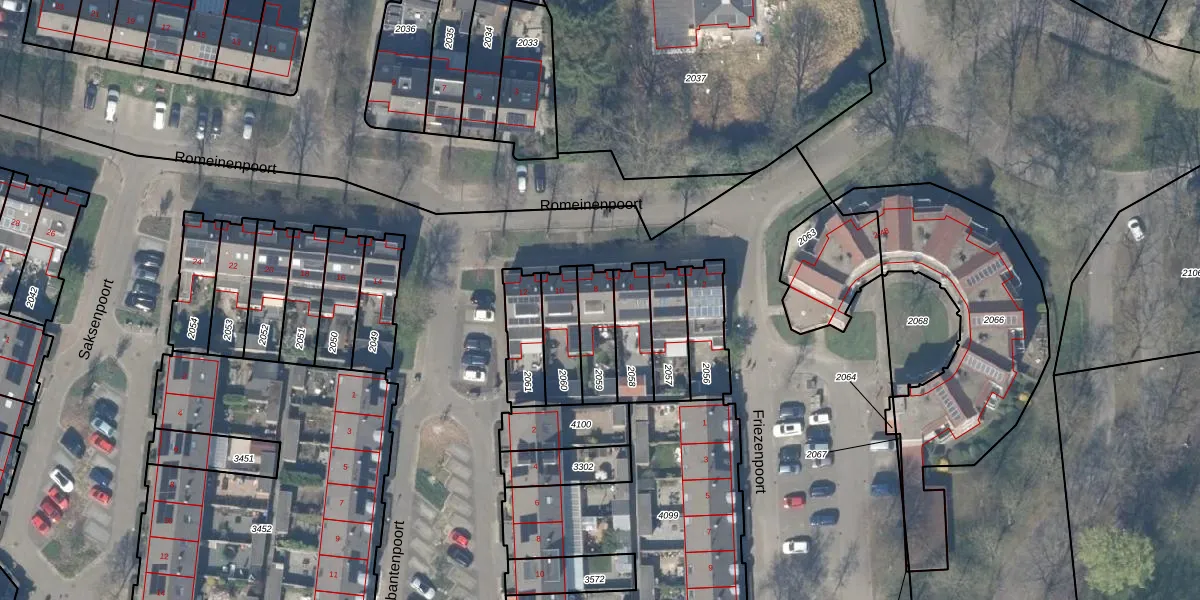 Het perceel waarop Romeinenpoort 8 staat heeft een oppervlakte van 136 m². Dit is een middelgroot perceel. De perceeloppervlakte wordt geregistreerd door het Kadaster. Gedetailleerde informatie over de maten van dit perceel kunt u vinden in het rapport Kadastrale kaart met maatvoering van Romeinenpoort 8.