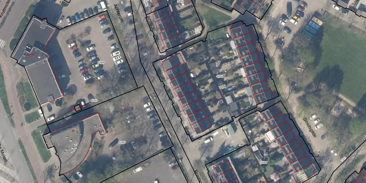 Het perceel waarop Rosmolen 8 staat heeft een oppervlakte van 2635 m². Dit is een zeer groot perceel. De perceeloppervlakte wordt geregistreerd door het Kadaster. Gedetailleerde informatie over de maten van dit perceel kunt u vinden in het rapport Kadastrale kaart met maatvoering van Rosmolen 8.