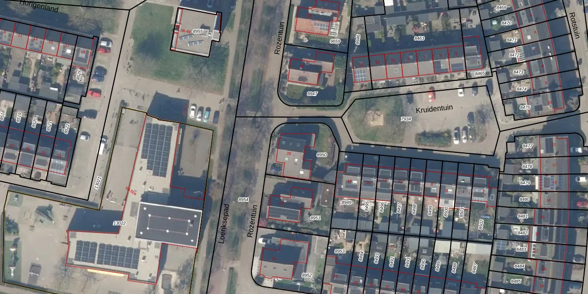 Rozentuin 20 is gelegen op kadastraal perceel HTN04A8950. Deze kadastrale aanduiding is uniek en wordt gebruikt door het Kadaster om eigendomsrechten en andere zakelijke rechten vast te leggen. Het perceel maakt onderdeel uit van de kadastrale gemeente Houten.
