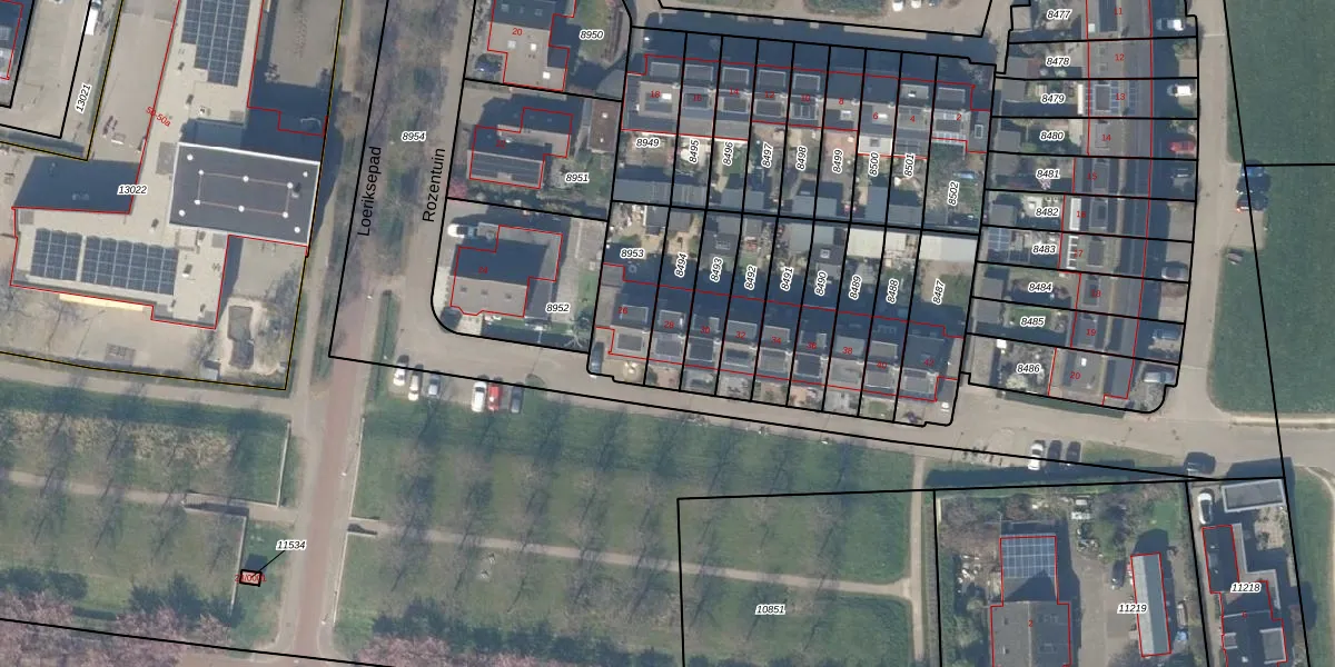 Rozentuin 28 is gelegen op kadastraal perceel HTN04A8494. Deze kadastrale aanduiding is uniek en wordt gebruikt door het Kadaster om eigendomsrechten en andere zakelijke rechten vast te leggen. Het perceel maakt onderdeel uit van de kadastrale gemeente Houten.