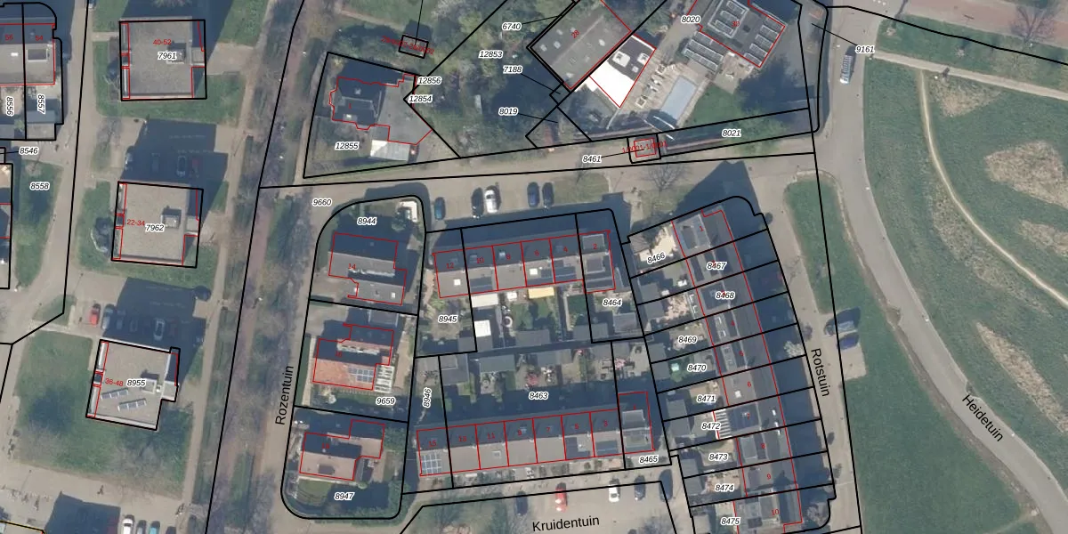Rozentuin 6 is gelegen op kadastraal perceel HTN04A8463. Deze kadastrale aanduiding is uniek en wordt gebruikt door het Kadaster om eigendomsrechten en andere zakelijke rechten vast te leggen. Het perceel maakt onderdeel uit van de kadastrale gemeente Houten.