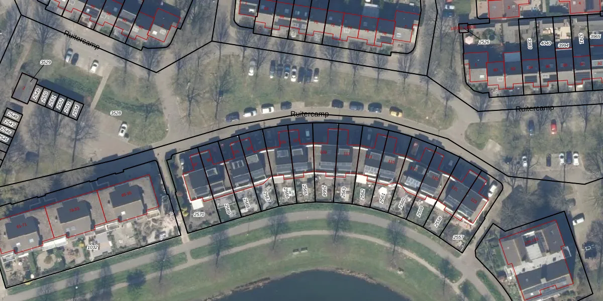 Het perceel waarop Ruitercamp 107 staat heeft een oppervlakte van 193 m². Dit is een middelgroot perceel. De perceeloppervlakte wordt geregistreerd door het Kadaster. Gedetailleerde informatie over de maten van dit perceel kunt u vinden in het rapport Kadastrale kaart met maatvoering van Ruitercamp 107.