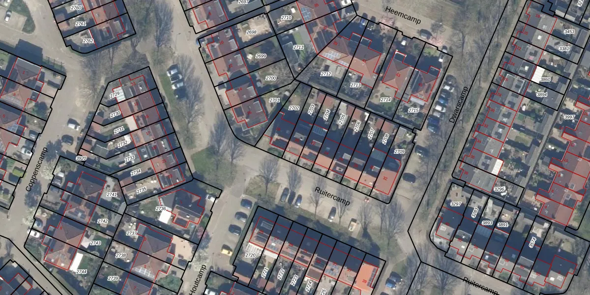 Het perceel waarop Ruitercamp 20 staat heeft een oppervlakte van 142 m². Dit is een middelgroot perceel. De perceeloppervlakte wordt geregistreerd door het Kadaster. Gedetailleerde informatie over de maten van dit perceel kunt u vinden in het rapport Kadastrale kaart met maatvoering van Ruitercamp 20.