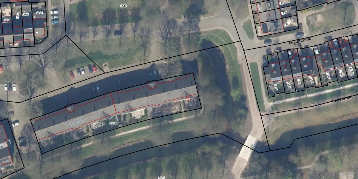 Ruitercamp 213 is gelegen op kadastraal perceel HTN04E2556. Deze kadastrale aanduiding is uniek en wordt gebruikt door het Kadaster om eigendomsrechten en andere zakelijke rechten vast te leggen. Het perceel maakt onderdeel uit van de kadastrale gemeente Houten.
