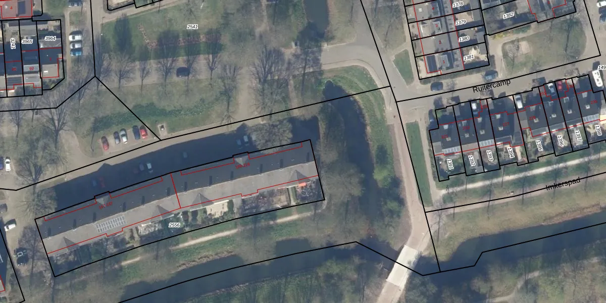 Het perceel waarop Ruitercamp 219 staat heeft een oppervlakte van 1880 m². Dit is een zeer groot perceel. De perceeloppervlakte wordt geregistreerd door het Kadaster. Gedetailleerde informatie over de maten van dit perceel kunt u vinden in het rapport Kadastrale kaart met maatvoering van Ruitercamp 219.