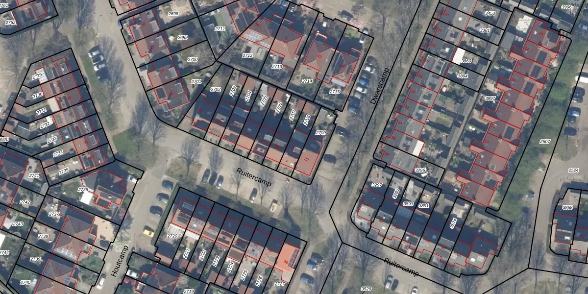 Het perceel waarop Ruitercamp 30 staat heeft een oppervlakte van 142 m². Dit is een middelgroot perceel. De perceeloppervlakte wordt geregistreerd door het Kadaster. Gedetailleerde informatie over de maten van dit perceel kunt u vinden in het rapport Kadastrale kaart met maatvoering van Ruitercamp 30.