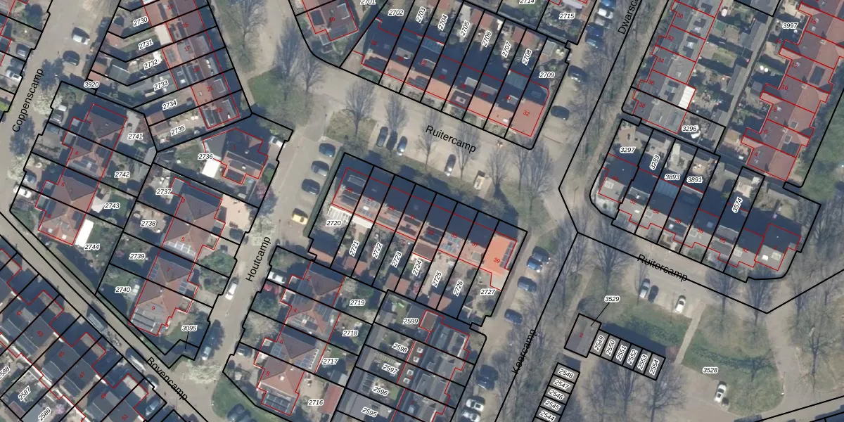 Het perceel waarop Ruitercamp 31 staat heeft een oppervlakte van 142 m². Dit is een middelgroot perceel. De perceeloppervlakte wordt geregistreerd door het Kadaster. Gedetailleerde informatie over de maten van dit perceel kunt u vinden in het rapport Kadastrale kaart met maatvoering van Ruitercamp 31.
