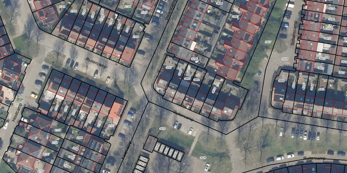 Ruitercamp 52 is gelegen op kadastraal perceel HTN04E3283. Deze kadastrale aanduiding is uniek en wordt gebruikt door het Kadaster om eigendomsrechten en andere zakelijke rechten vast te leggen. Het perceel maakt onderdeel uit van de kadastrale gemeente Houten.