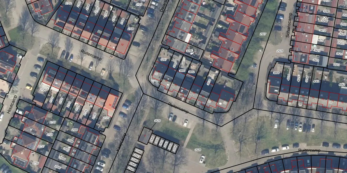 Het perceel waarop Ruitercamp 54 staat heeft een oppervlakte van 142 m². Dit is een middelgroot perceel. De perceeloppervlakte wordt geregistreerd door het Kadaster. Gedetailleerde informatie over de maten van dit perceel kunt u vinden in het rapport Kadastrale kaart met maatvoering van Ruitercamp 54.