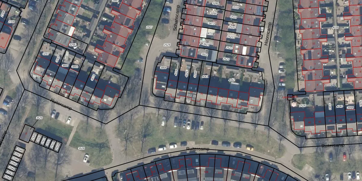 Ruitercamp 66 is gelegen op kadastraal perceel HTN04E4025. Deze kadastrale aanduiding is uniek en wordt gebruikt door het Kadaster om eigendomsrechten en andere zakelijke rechten vast te leggen. Het perceel maakt onderdeel uit van de kadastrale gemeente Houten.