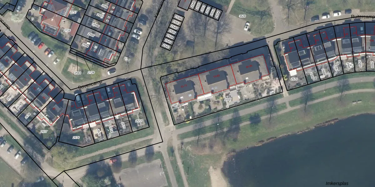 Het perceel waarop Ruitercamp 67 staat heeft een oppervlakte van 1580 m². Dit is een zeer groot perceel. De perceeloppervlakte wordt geregistreerd door het Kadaster. Gedetailleerde informatie over de maten van dit perceel kunt u vinden in het rapport Kadastrale kaart met maatvoering van Ruitercamp 67.