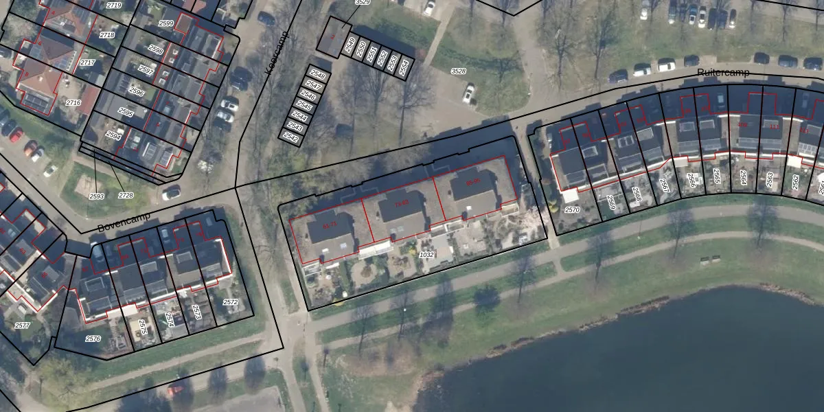 Het perceel waarop Ruitercamp 81 staat heeft een oppervlakte van 1580 m². Dit is een zeer groot perceel. De perceeloppervlakte wordt geregistreerd door het Kadaster. Gedetailleerde informatie over de maten van dit perceel kunt u vinden in het rapport Kadastrale kaart met maatvoering van Ruitercamp 81.