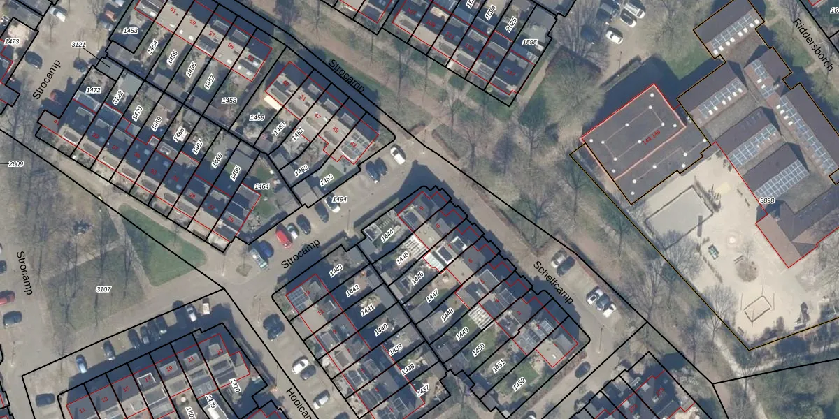 Het perceel waarop Schelfcamp 9 staat heeft een oppervlakte van 180 m². Dit is een middelgroot perceel. De perceeloppervlakte wordt geregistreerd door het Kadaster. Gedetailleerde informatie over de maten van dit perceel kunt u vinden in het rapport Kadastrale kaart met maatvoering van Schelfcamp 9.