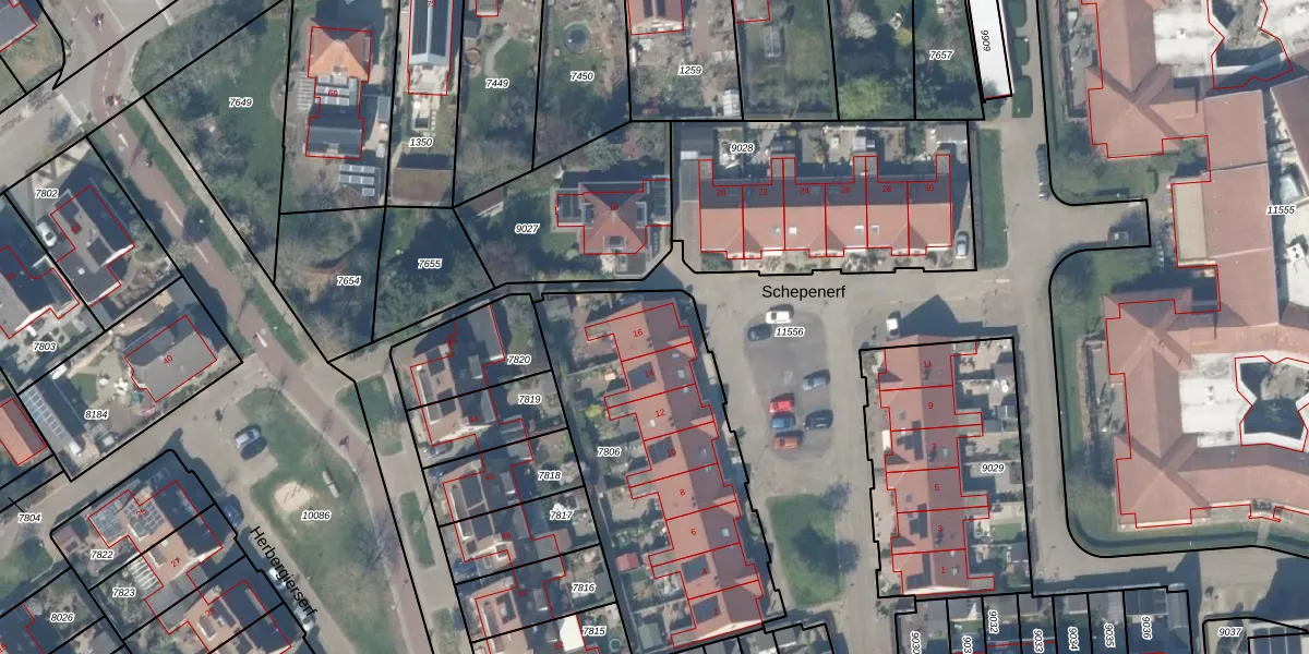 Schepenerf 16 is gelegen op kadastraal perceel HTN04A7806. Deze kadastrale aanduiding is uniek en wordt gebruikt door het Kadaster om eigendomsrechten en andere zakelijke rechten vast te leggen. Het perceel maakt onderdeel uit van de kadastrale gemeente Houten.