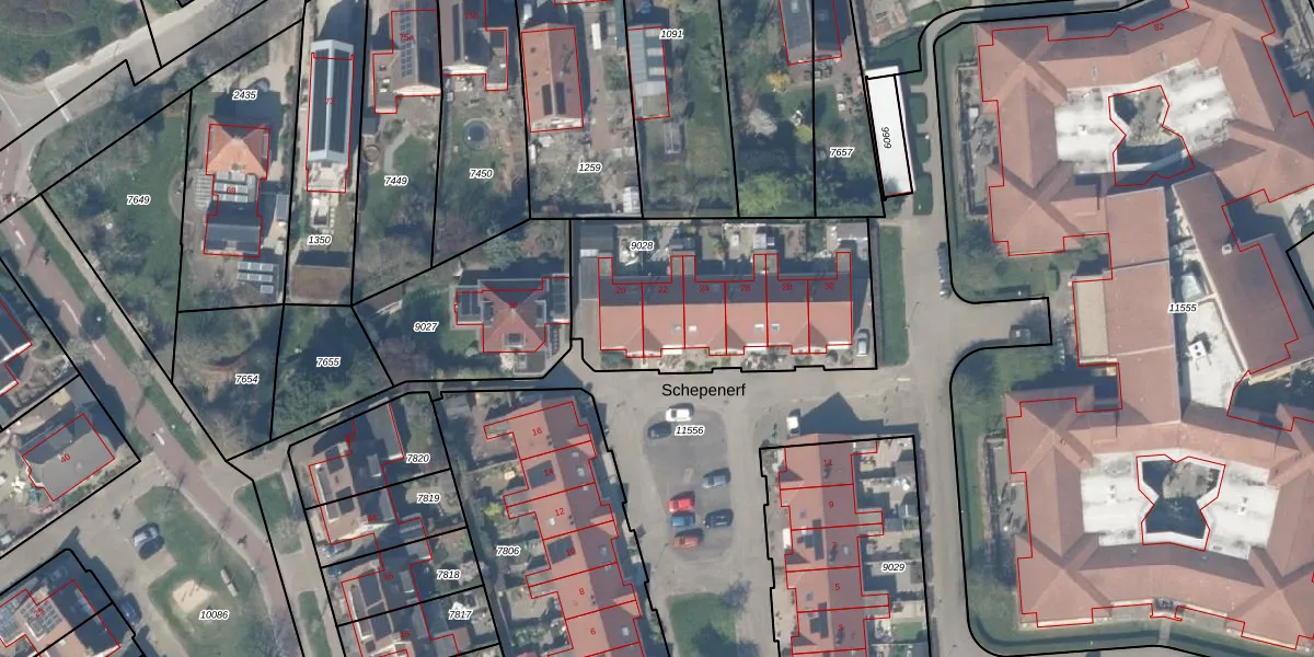 Het perceel waarop Schepenerf 22 staat heeft een oppervlakte van 1050 m². Dit is een zeer groot perceel. De perceeloppervlakte wordt geregistreerd door het Kadaster. Gedetailleerde informatie over de maten van dit perceel kunt u vinden in het rapport Kadastrale kaart met maatvoering van Schepenerf 22.