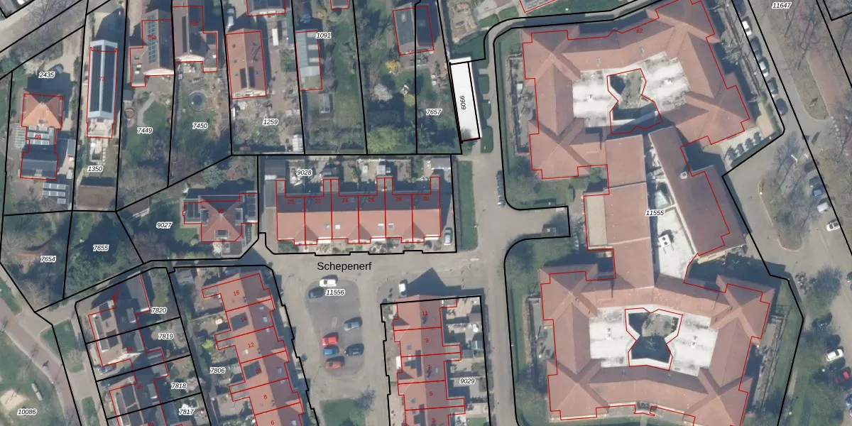 Het perceel waarop Schepenerf 30 staat heeft een oppervlakte van 1050 m². Dit is een zeer groot perceel. De perceeloppervlakte wordt geregistreerd door het Kadaster. Gedetailleerde informatie over de maten van dit perceel kunt u vinden in het rapport Kadastrale kaart met maatvoering van Schepenerf 30.