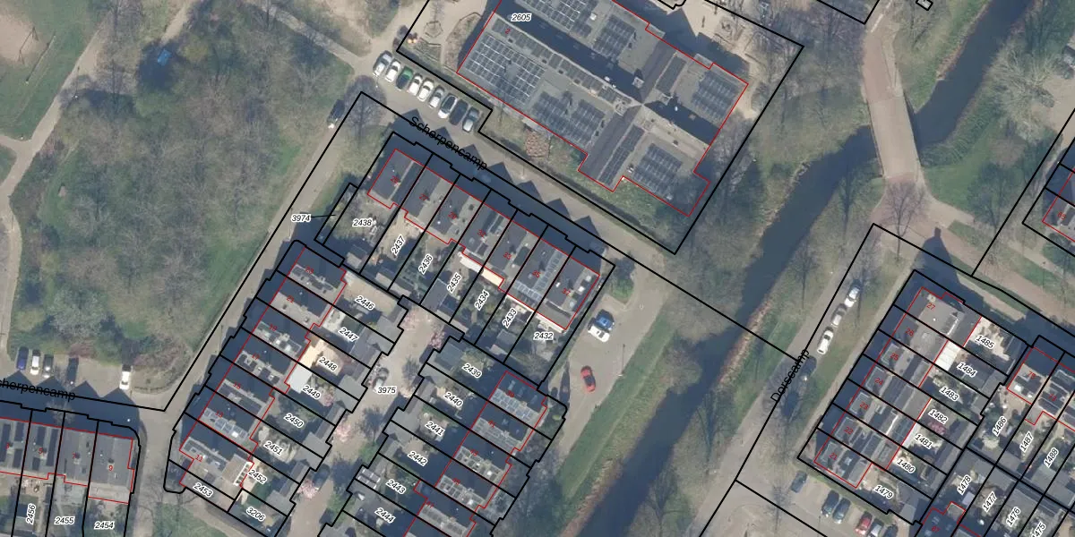 Scherpencamp 35 is gelegen op kadastraal perceel HTN04E2433. Deze kadastrale aanduiding is uniek en wordt gebruikt door het Kadaster om eigendomsrechten en andere zakelijke rechten vast te leggen. Het perceel maakt onderdeel uit van de kadastrale gemeente Houten.