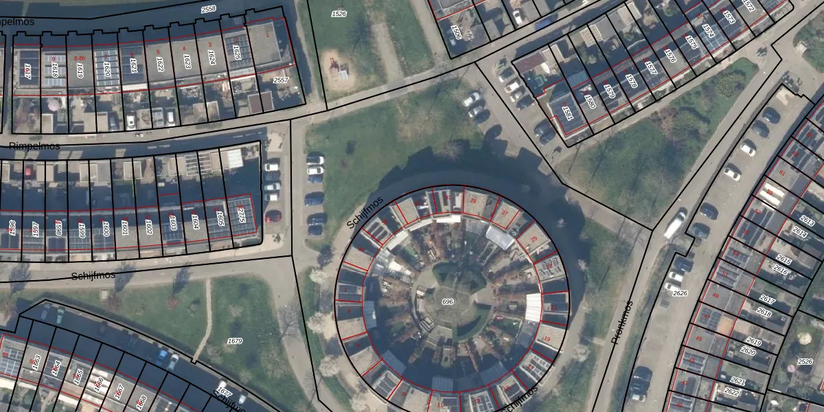 Het perceel waarop Schijfmos 33 staat heeft een oppervlakte van 2554 m². Dit is een zeer groot perceel. De perceeloppervlakte wordt geregistreerd door het Kadaster. Gedetailleerde informatie over de maten van dit perceel kunt u vinden in het rapport Kadastrale kaart met maatvoering van Schijfmos 33.