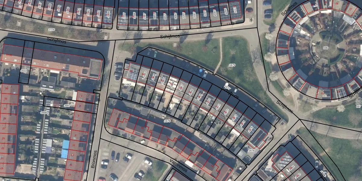 Schijfmos 50 is gelegen op kadastraal perceel HTN04B1667. Deze kadastrale aanduiding is uniek en wordt gebruikt door het Kadaster om eigendomsrechten en andere zakelijke rechten vast te leggen. Het perceel maakt onderdeel uit van de kadastrale gemeente Houten.