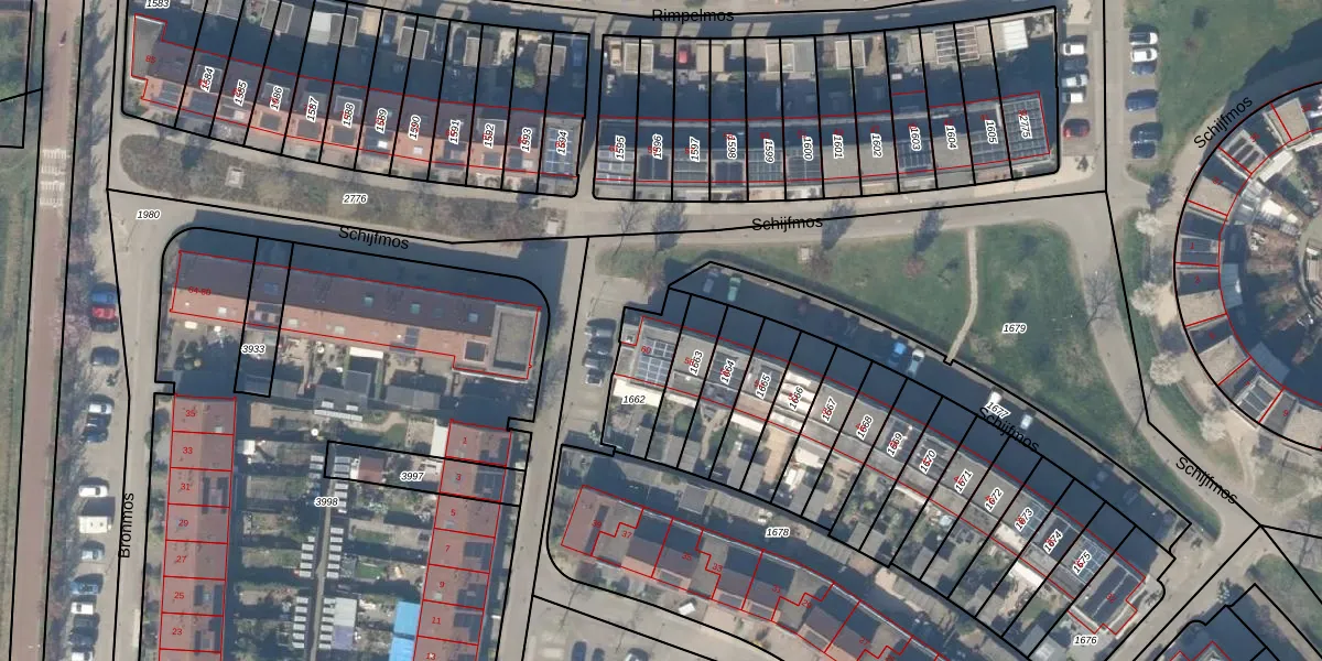 Het perceel waarop Schijfmos 60 staat heeft een oppervlakte van 189 m². Dit is een middelgroot perceel. De perceeloppervlakte wordt geregistreerd door het Kadaster. Gedetailleerde informatie over de maten van dit perceel kunt u vinden in het rapport Kadastrale kaart met maatvoering van Schijfmos 60.