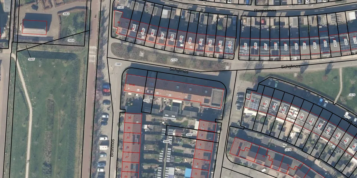 Het perceel waarop Schijfmos 70 staat heeft een oppervlakte van 3921 m². Dit is een zeer groot perceel. De perceeloppervlakte wordt geregistreerd door het Kadaster. Gedetailleerde informatie over de maten van dit perceel kunt u vinden in het rapport Kadastrale kaart met maatvoering van Schijfmos 70.