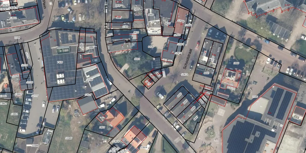 Schoolstraat 1-0002 is gelegen op kadastraal perceel HTN04A6439. Deze kadastrale aanduiding is uniek en wordt gebruikt door het Kadaster om eigendomsrechten en andere zakelijke rechten vast te leggen. Het perceel maakt onderdeel uit van de kadastrale gemeente Houten.