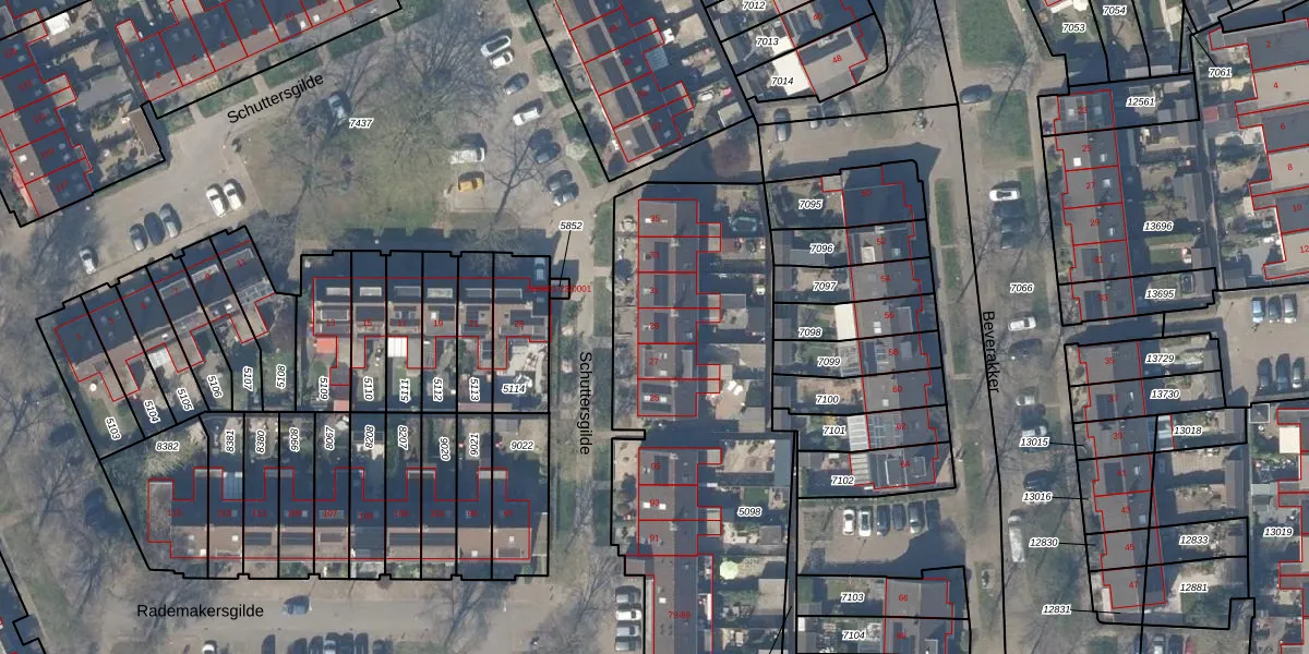 Het perceel waarop Schuttersgilde 29 staat heeft een oppervlakte van 2625 m². Dit is een zeer groot perceel. De perceeloppervlakte wordt geregistreerd door het Kadaster. Gedetailleerde informatie over de maten van dit perceel kunt u vinden in het rapport Kadastrale kaart met maatvoering van Schuttersgilde 29.
