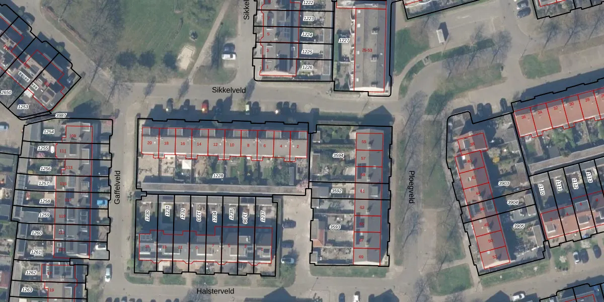Sikkelveld 2 is gelegen op kadastraal perceel HTN04E1228. Deze kadastrale aanduiding is uniek en wordt gebruikt door het Kadaster om eigendomsrechten en andere zakelijke rechten vast te leggen. Het perceel maakt onderdeel uit van de kadastrale gemeente Houten.