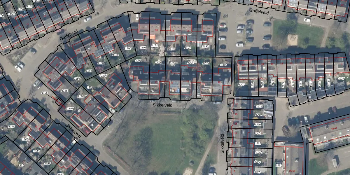 Sikkelveld 25 is gelegen op kadastraal perceel HTN04E1203. Deze kadastrale aanduiding is uniek en wordt gebruikt door het Kadaster om eigendomsrechten en andere zakelijke rechten vast te leggen. Het perceel maakt onderdeel uit van de kadastrale gemeente Houten.