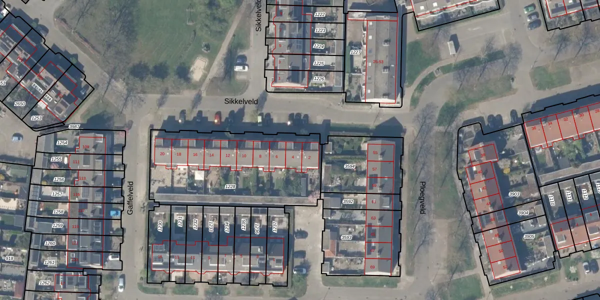 Het perceel waarop Sikkelveld 4 staat heeft een oppervlakte van 1390 m². Dit is een zeer groot perceel. De perceeloppervlakte wordt geregistreerd door het Kadaster. Gedetailleerde informatie over de maten van dit perceel kunt u vinden in het rapport Kadastrale kaart met maatvoering van Sikkelveld 4.