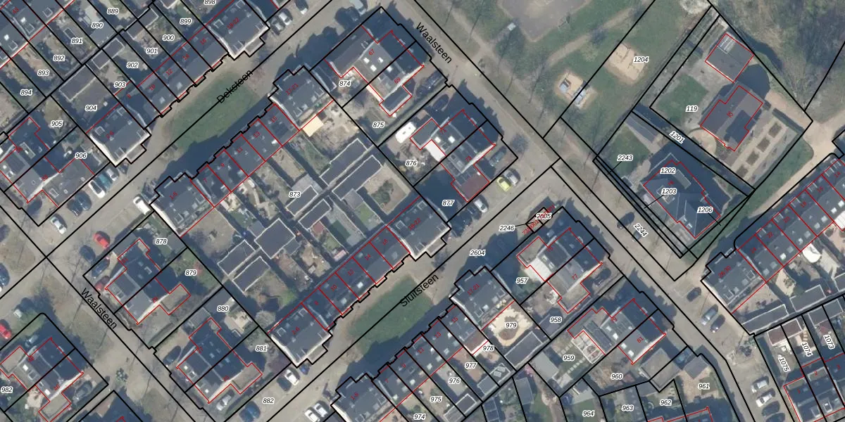 Het perceel waarop Sluitsteen 22 staat heeft een oppervlakte van 2497 m². Dit is een zeer groot perceel. De perceeloppervlakte wordt geregistreerd door het Kadaster. Gedetailleerde informatie over de maten van dit perceel kunt u vinden in het rapport Kadastrale kaart met maatvoering van Sluitsteen 22.