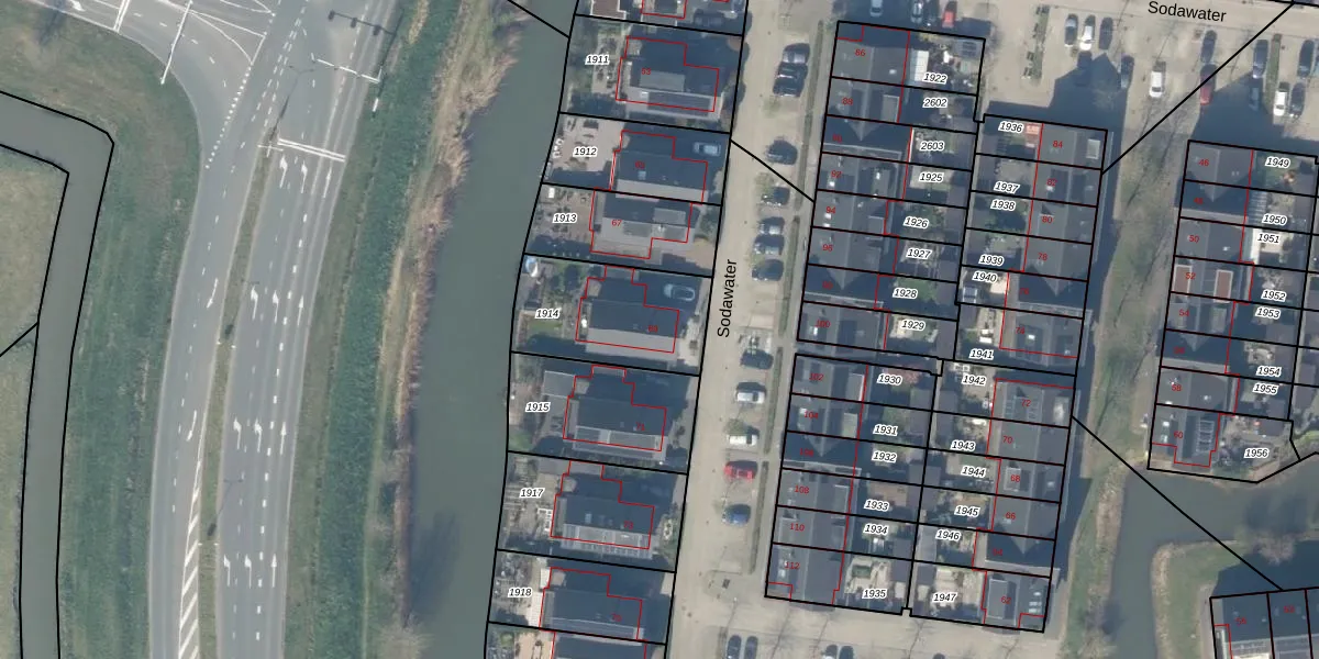 Het perceel waarop Sodawater 69 staat heeft een oppervlakte van 440 m². Dit is een groot perceel. De perceeloppervlakte wordt geregistreerd door het Kadaster. Gedetailleerde informatie over de maten van dit perceel kunt u vinden in het rapport Kadastrale kaart met maatvoering van Sodawater 69.